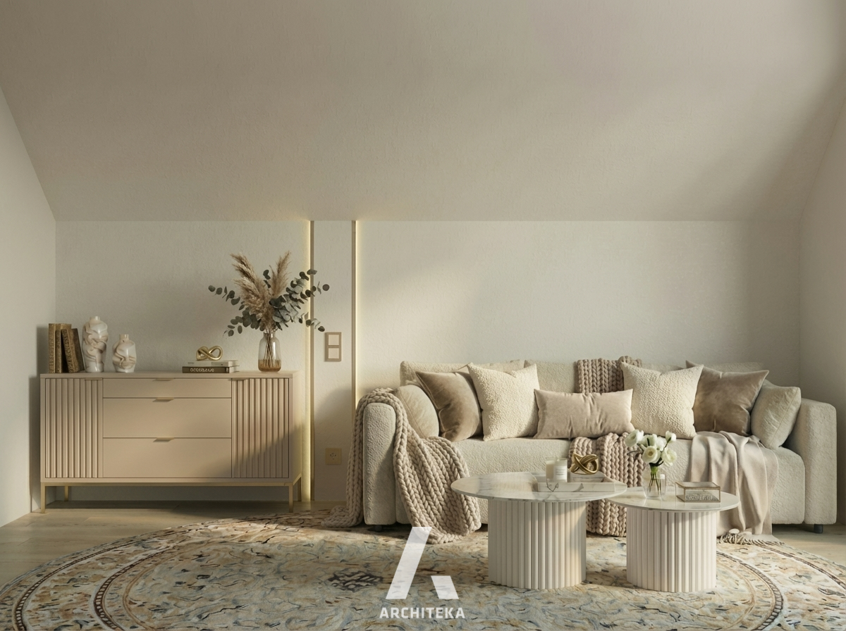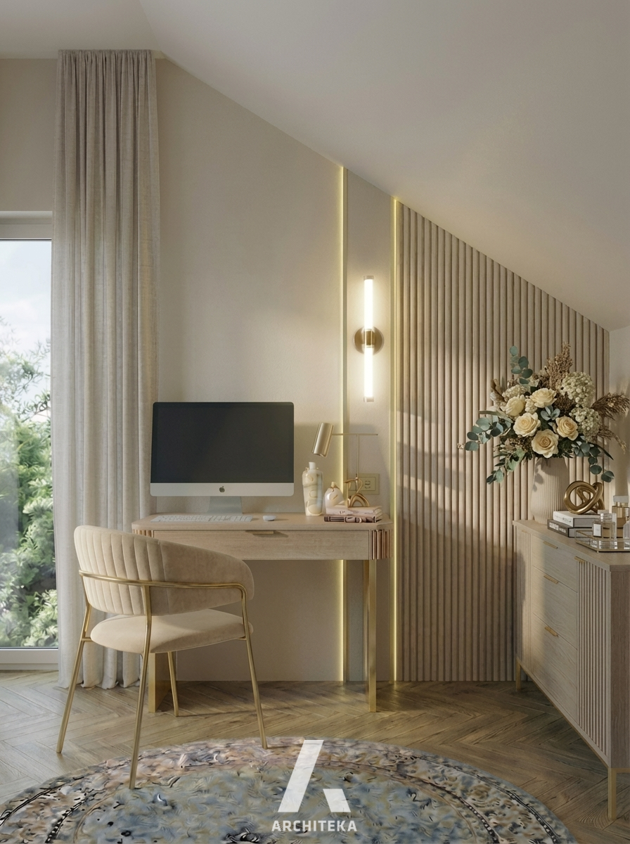 Ten projekt powstał z myślą o spokoju i równowadze w codziennym życiu. Jasna, harmonijna przestrzeń została zaprojektowana tak, aby sprzyjać odpoczynkowi i naturalnemu rytmowi dnia. Miękkie formy, stonowana kolorystyka i dopracowane detale budują poczucie porządku i lekkości, bez nadmiaru bodźców. Każdy element ma tu swoje miejsce i uzasadnienie – estetyczne i funkcjonalne – dzięki czemu wnętrze staje się tłem dla życia, a nie jego dominantą. To przestrzeń, w której łatwo się zatrzymać, wyciszyć i poczuć naprawdę u siebie.