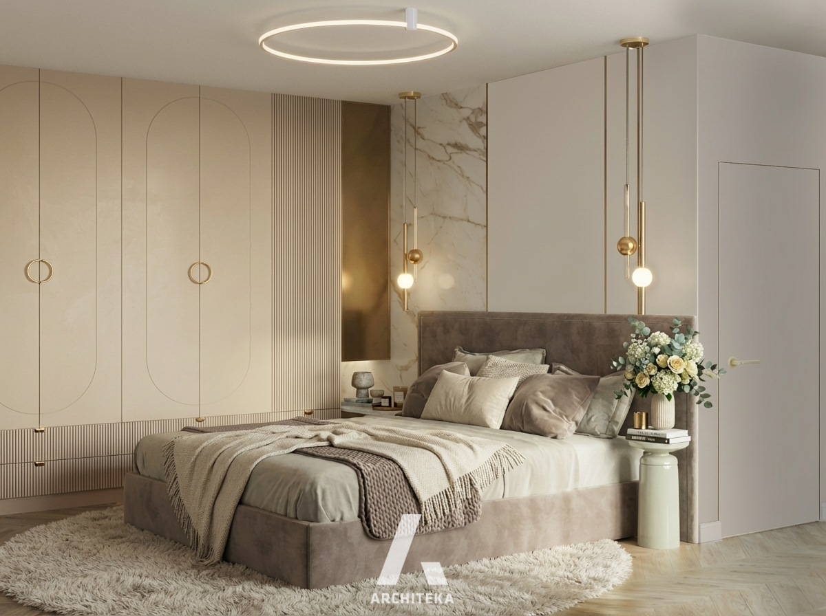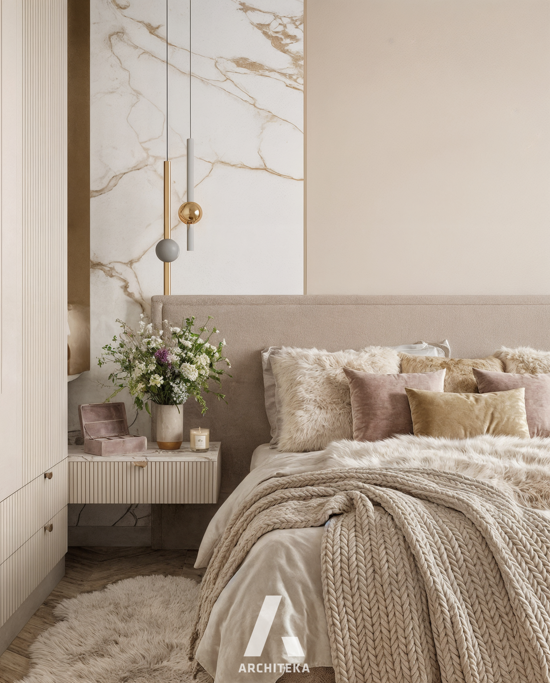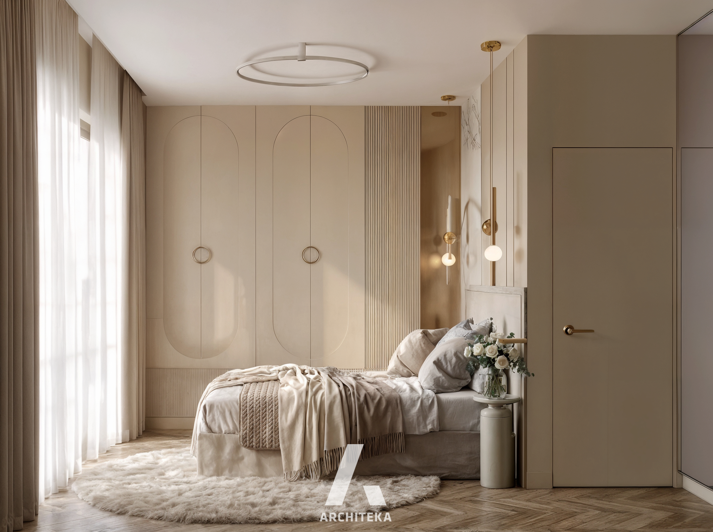 Ten projekt został zaprojektowany jako spokojna, prywatna przestrzeń sprzyjająca regeneracji i wyciszeniu. Jasna, ciepła kolorystyka oraz miękkie materiały budują poczucie komfortu i bezpieczeństwa, a dopracowane detale porządkują wnętrze bez wrażenia formalności. Układ został zaplanowany tak, aby codzienne funkcje były intuicyjne i naturalnie wpisane w przestrzeń, bez zbędnych podziałów i nadmiaru elementów. To wnętrze, które pozwala zwolnić tempo, odpocząć i poczuć równowagę na co dzień.