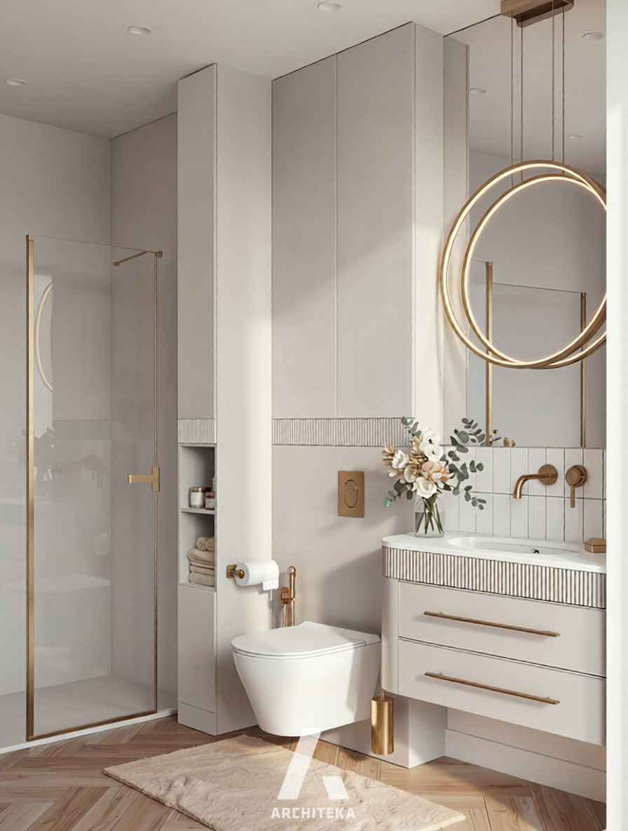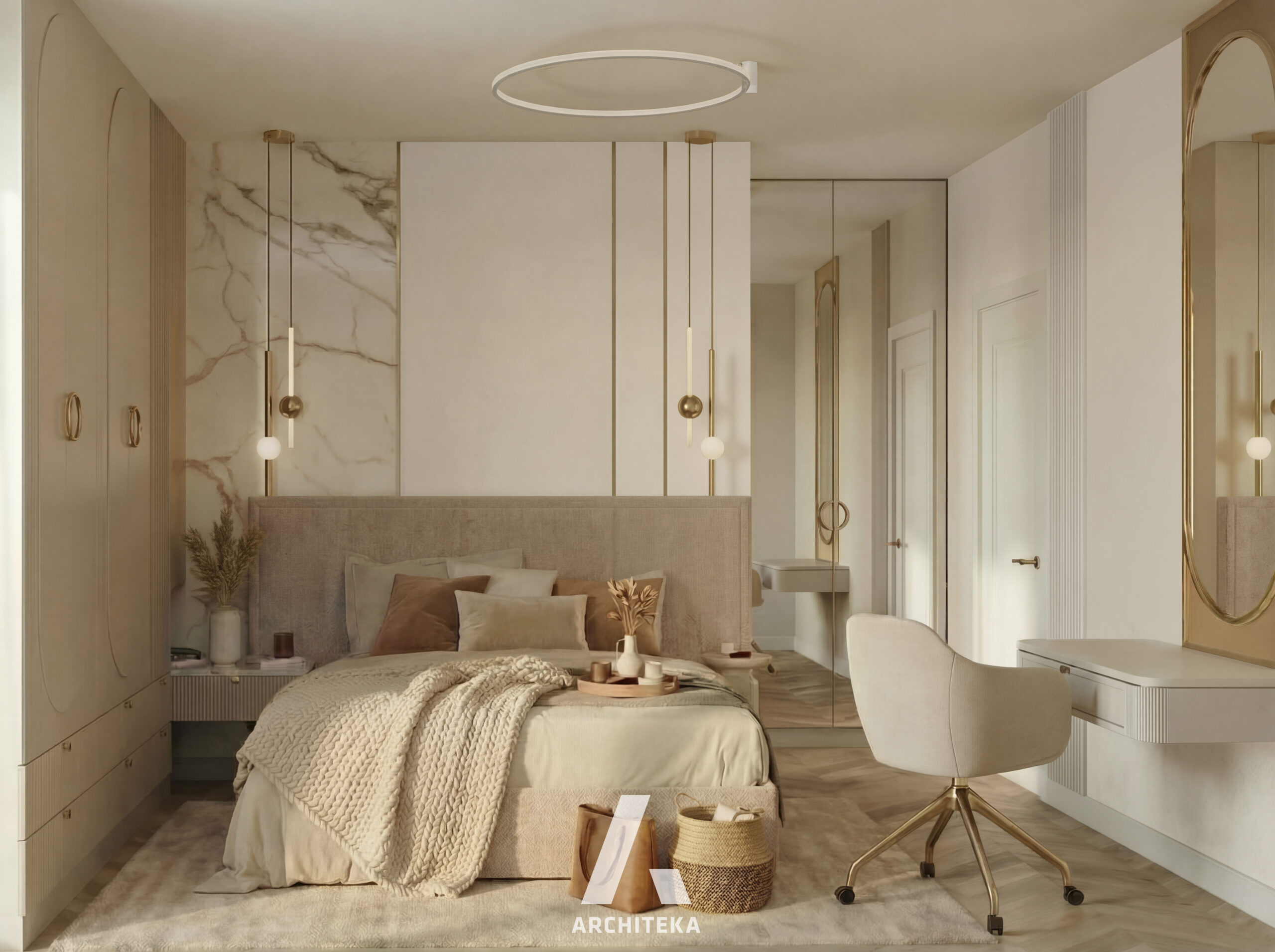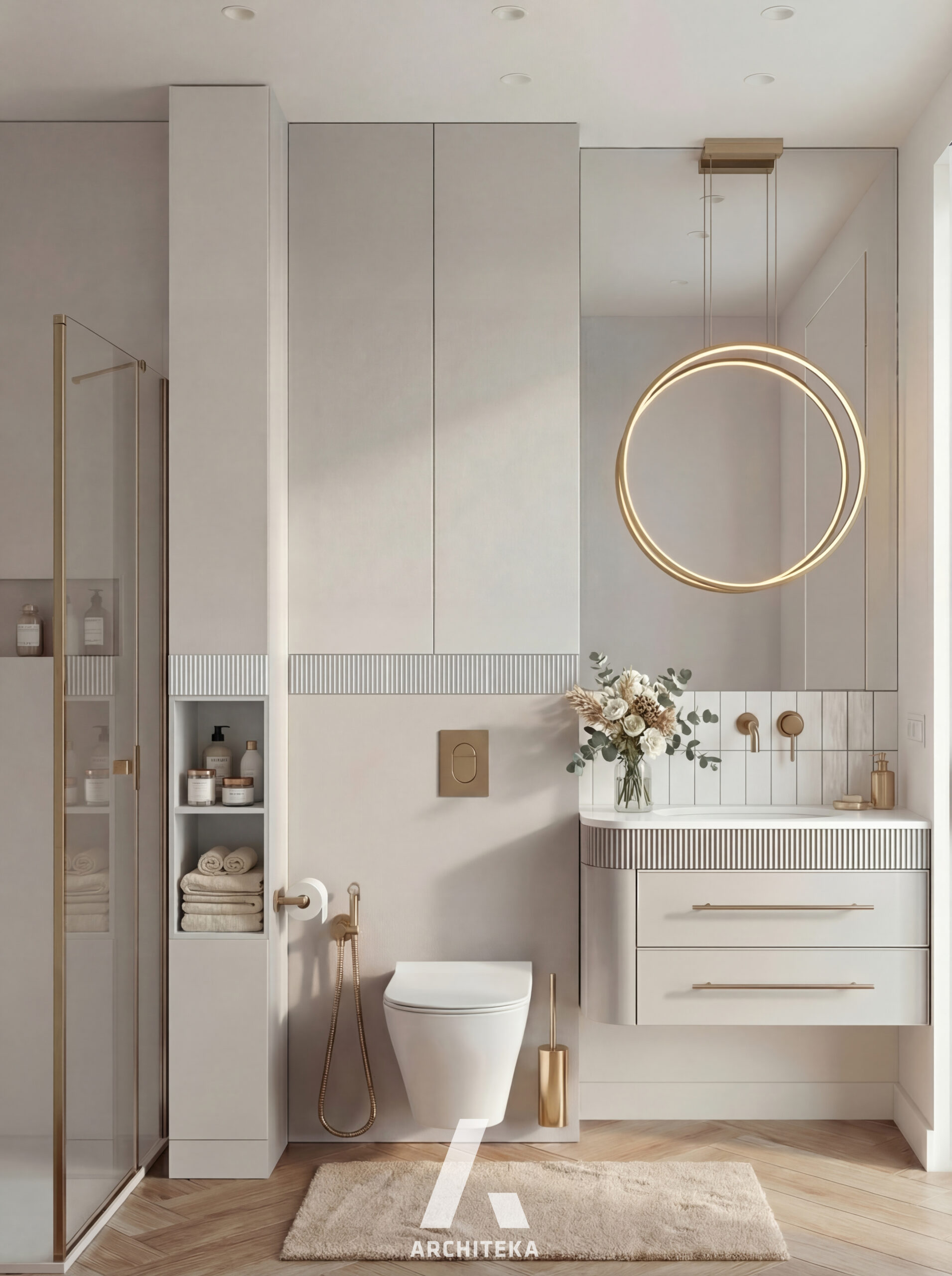 Ten projekt został zaprojektowany jako spokojna, prywatna przestrzeń sprzyjająca regeneracji i wyciszeniu. Jasna, ciepła kolorystyka oraz miękkie materiały budują poczucie komfortu i bezpieczeństwa, a dopracowane detale porządkują wnętrze bez wrażenia formalności. Układ został zaplanowany tak, aby codzienne funkcje były intuicyjne i naturalnie wpisane w przestrzeń, bez zbędnych podziałów i nadmiaru elementów. To wnętrze, które pozwala zwolnić tempo, odpocząć i poczuć równowagę na co dzień.